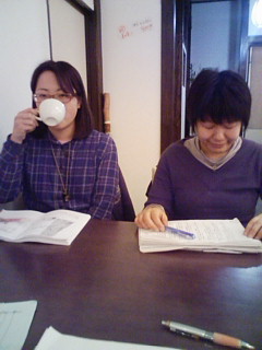 そんな写真をとりつつも、いなべと打ち合わせしつつ、木材発注係(田口さん)と木材受注係(ゆってぃさん)の間で密約が取り交わされたとか・・・。ゆうきちゃんの考えてくれた舞台美術、どうなりますやら乞うご期待!