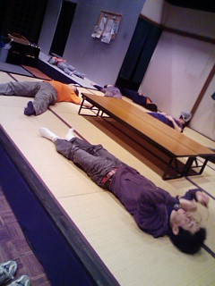 疲れているときこそ腹式呼吸!なので、皆で寝転がって呼吸を再確認。