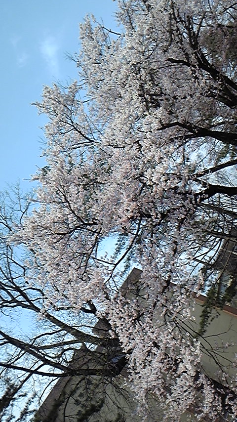 最初の桜は岩大中央食堂前の桜です。みなさま、ご飯をたべながらのお花見はいかがでしょうか?